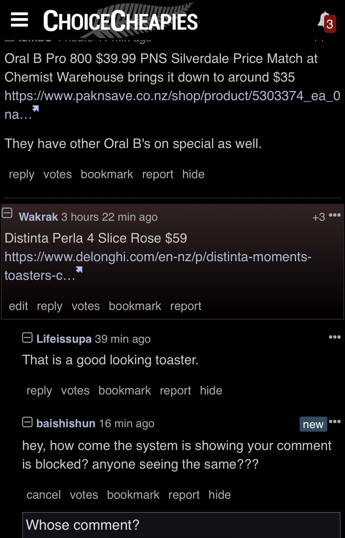 Bookmark this link in your web browser (to go to the newest comment): https://www.cheapies.nz/node/53356/lastcomment