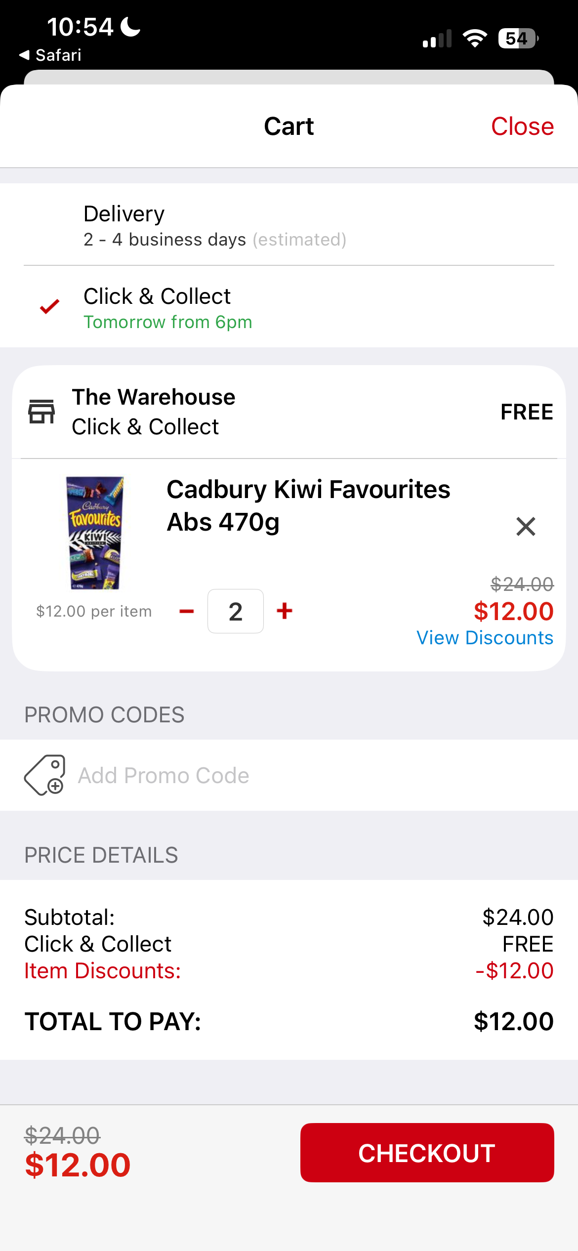i added 2 x Cadbury Kiwi Favourites Abs, the total was $24 in cart