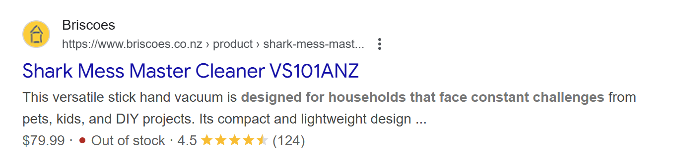 But Briscoes have no stock, and I doubt they'd buy more in right now just to price match. They'll wait until the Warehouse deal finishes, talk to the Shark rep to ensure no retail price match conflict, and go from there.