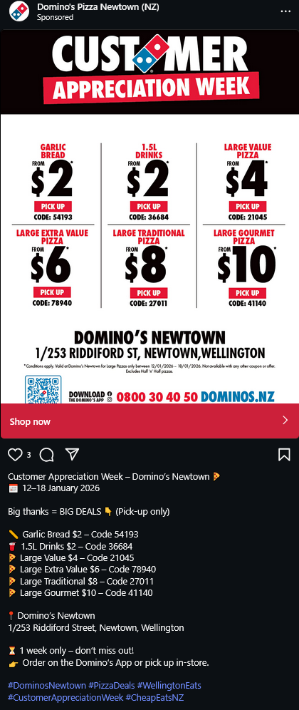 🔥🍕 CUSTOMER APPRECIATION WEEK – DOMINO’S WELLINGTON CITY 🍕🔥