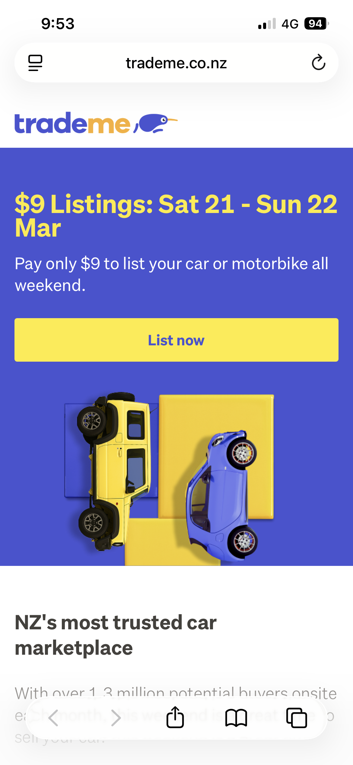 Trade Me NZ – $9 Car & Motorbike Listings (Sat 21 – Sun 22 Mar)